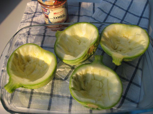 Я буду готовить молодые кабачки. Для начинки я взяла филе тунца — вкусная, нежная рыбка.