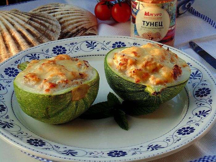 Сейчас на прилавках много свежей зелени и молодых овощей, предлагаю приготовить вот такие очаровательные кабачки, фаршированные сыром и тунцом — вкусное, легкое, ароматное блюдо, идеально на ужин к бокалу белого вина. И огромный плюс, что готовить быстро, и совесть после такого ужина спокойна.